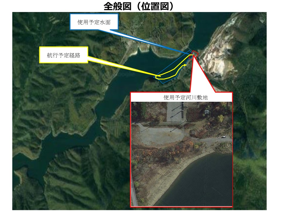 場 所  かなやま湖東鹿越大橋袂左岸の河川敷地及び水面