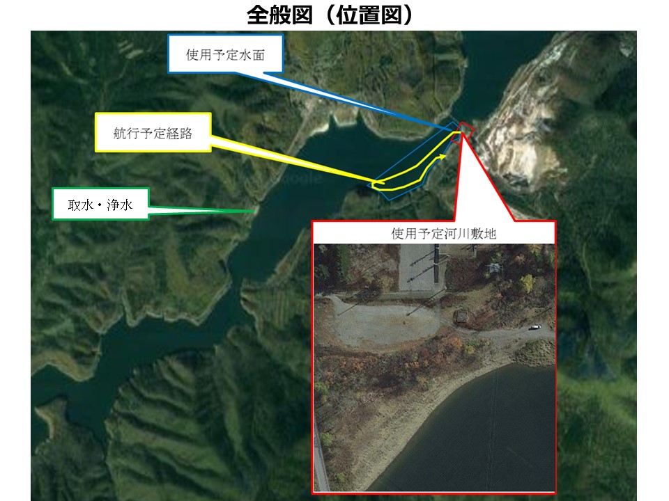 場 所 ①かなやま湖東鹿越大橋袂左岸の河川敷地及び水面