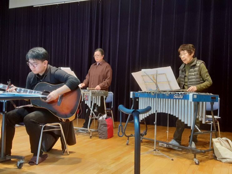 卒業を祝う会での演奏発表に向け、『さくら さくら』『いい日旅立ち』『蛍の光』『春よ来い』『襟裳岬』の計5曲を練習しました。