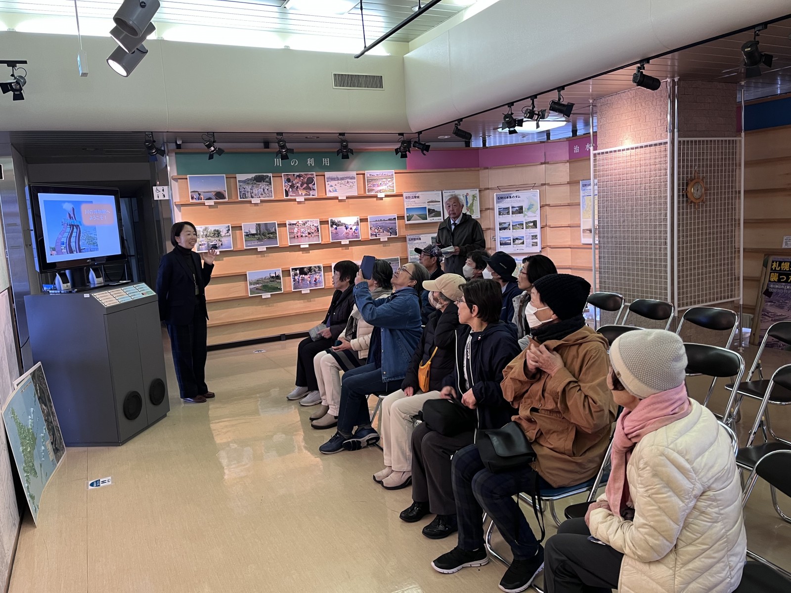 川の博物館では、石狩川の治水事業の歴史や石狩川流域で過去に発生した河川氾濫等の水害について説明を受けました。