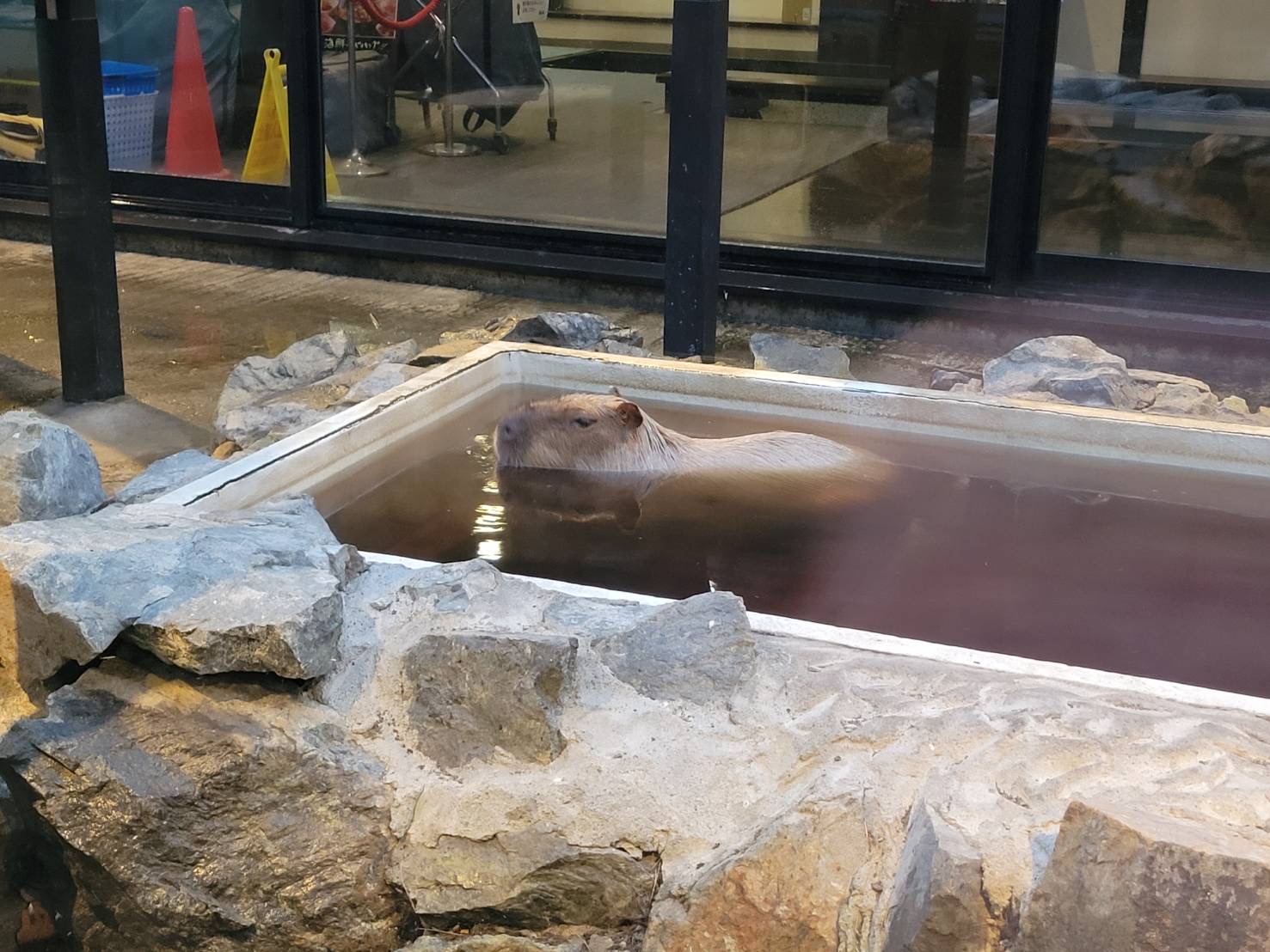 温泉の泉質は化石海水で、茶褐色のお湯でした。