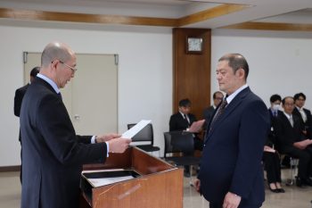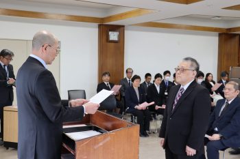 南富良野町役場大会議室にて教職員着任式を挙行し、着任された皆様へ鈴木教育長より辞令を手渡しました。